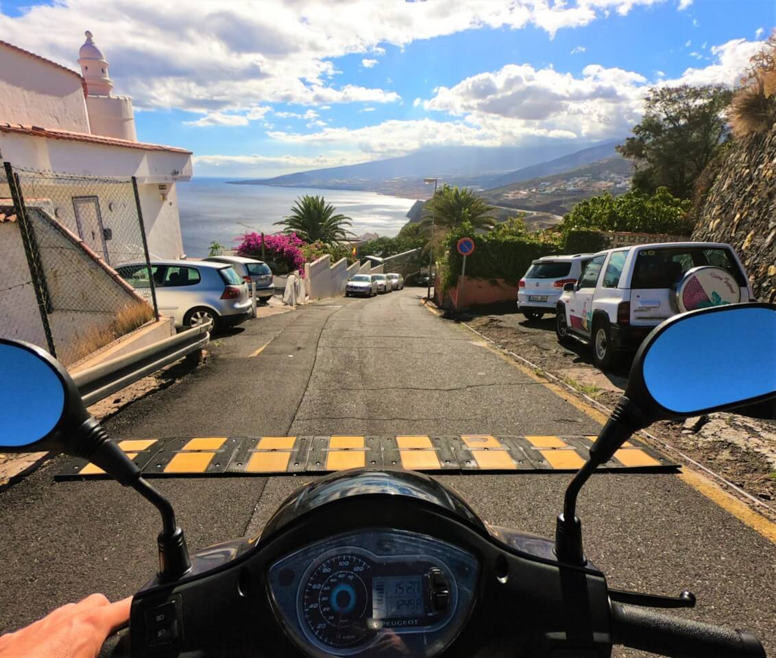 Grand classique de Tenerife et immanquable, avec des routes exceptionnelles et pour le coup encore plus sympa à faire en scooter car les voitures ont du mal dans les nombreux petits virages. Depuis Santiago del Teide prendre à l’Est direction Masca avec un premier arrêt au niveau du Mirador De Cherfe. Ensuite il n’y a qu’à suivre la route qui a tendance à bouchonner un peu, l’endroit étant très touristique. Si vous aimez ce genre de route cela vaut largement la peine de pousser jusqu’au