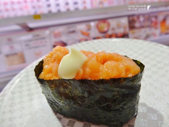 Alors voilà, la première chose que j’ai trouvé à vous raconter en mettant les pieds au Japon, c’est un restaurant de Sushi. Oui, mais un sushi shop high-tech messieurs-dames!