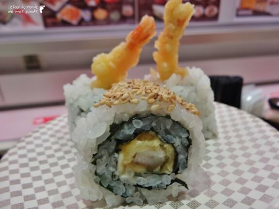 Par contre, c’est normal qu’il n’y ait pas de “california roll” parce que ce ne sont pas des sushi japonais mais des sushi créé de toute pièce à l’étranger pour le palet de étrangers…. Même si de temps à autre il est vendu dans quelques rare restaurant au Japon.