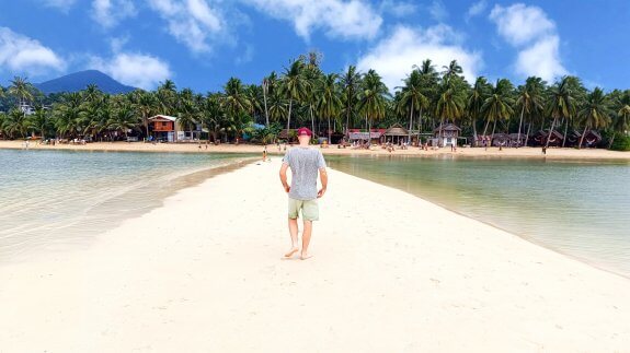 Vous pourriez commencer par le Amstardam Bar ou son voisin le Top Rock Bar, parmi les bars avec vue panoramique de l’île. En reprenant la route, ne manquez pas Hin Kong Sandbank, un banc de sable qui peut passer inaperçu et qui apparait surtout à marée basse. Il permet de s’avancer sur plusieurs centaines de mètres et donne l’impression que les gens marchent sur l’eau. Un endroit idéal à découvrir au coucher du soleil mais qui fait aussi de l’effet si le temps est nuageux. Ensuite, même si vous n’avez pas faim, partez découvrir le superbe restaurant en bord de mer, Koh Raham. Le plus simple c’est de vous garer du côté du Haad Son Resort et de descendre une centaine de mètres en direction de la mer. Vous y découvrirez de superbes paysages, une petite plage et ce restaurant riche en décorations avec une grande et belle terrasse en bois donnant sur l’eau.