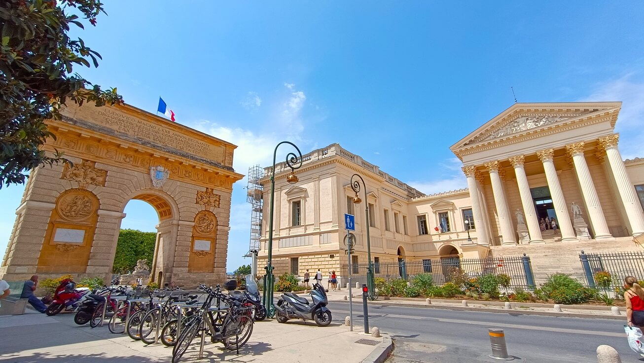 L’Arc de Triomphe datant de 1691 fait toujours son petit effet depuis la promenade du Peyrou ou depuis la rue Foch avec ses 15 mètres de haut. Vous pouvez également grimper au sommet et obtenir une vue panoramique (après une centaine de marches) uniquement via les visites guidées de l’Office de Tourisme. Ce qui ajoutera du charme à vos photos, c’est le bâtiment avec ses colonnes et son style néoclassique qui abrite actuellement la Cour d’assises et la cour d’appel.