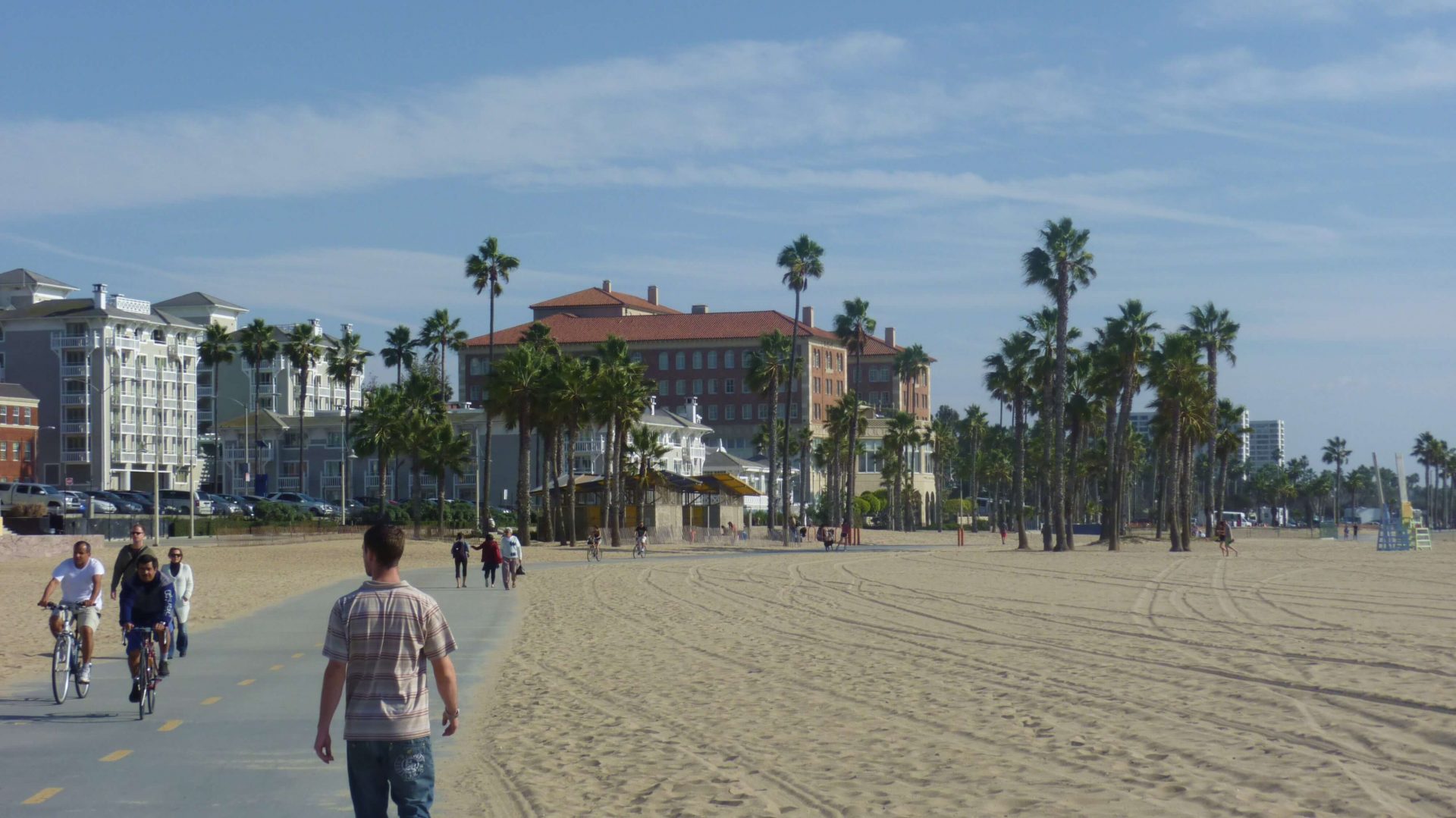 Moi qui ne suis pas particulièrement attiré par les plages en général, je dois bien reconnaître qu’elles ont un certain charme ici. Surtout début octobre, au calme, avec un petit vent frais et aussi du soleil. Faut pas déconner non plus, on est à Los Angeles (320 jours d’ensoleillement annuel, 21°C en moyenne en Octobre) ! Immenses pistes cyclables, skate park, aires de jeux, petites boutiques, villas design et couchers de soleil magnifiques…
