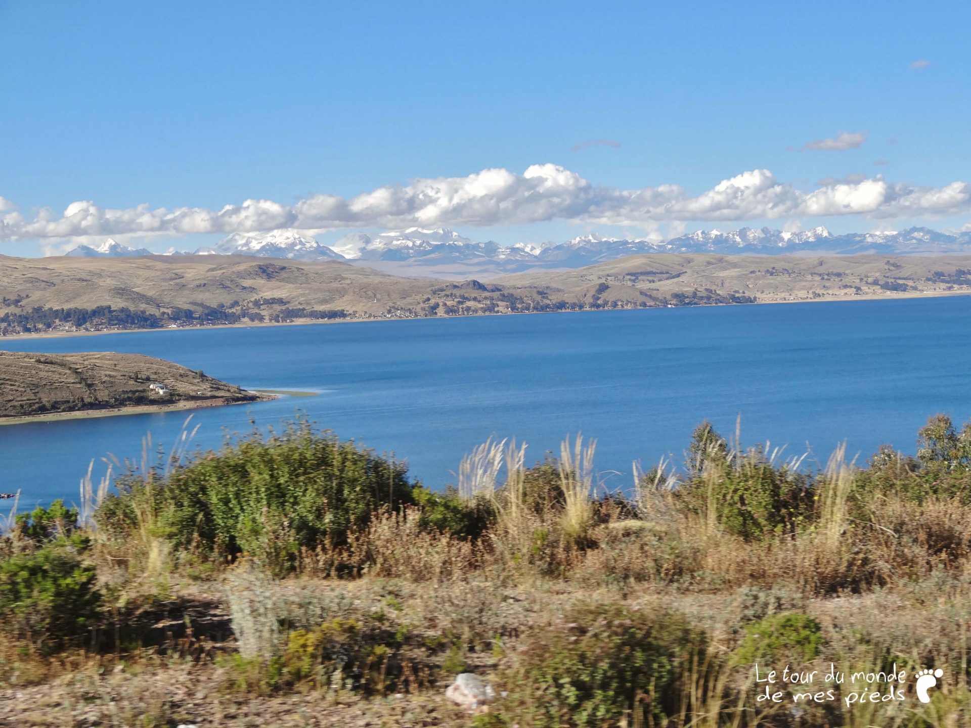 Depuis l’incroyable ville de La Paz, la route pour rejoindre Copacabana est merveilleuse. Deux heures et demi de voyage en bus qui longe la Cordillère Royale, un massif montagneux avec 6 sommets dépassant les 6000 mètres, puis qui survole le majestueux lac Titicaca.