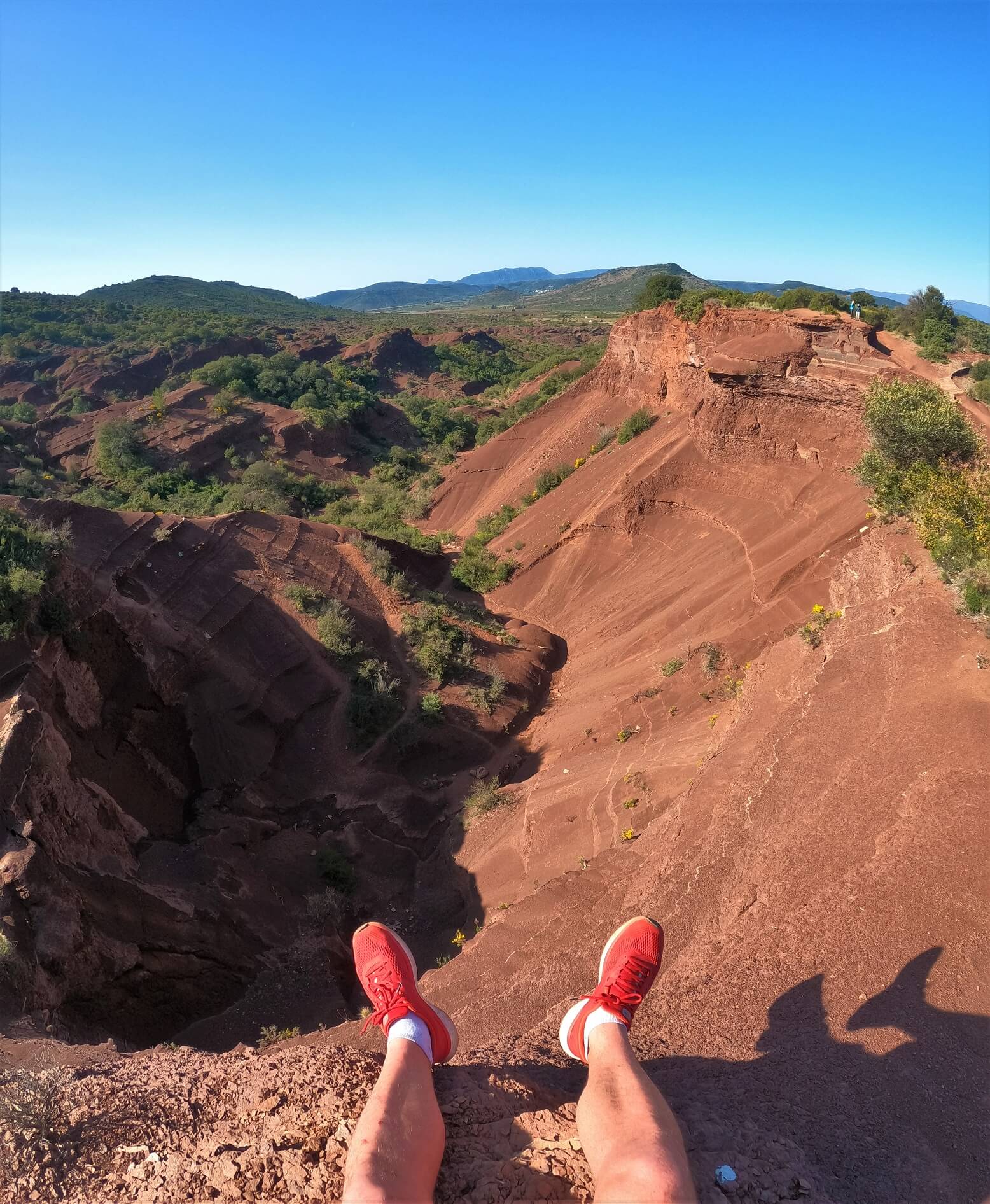 Mais pour visiter le Canyon à proprement parler, je vous conseille plutôt de rechercher Parking et accès Canyon du Diable. Il y a une toute petite portion (600 mètres environs) sur une route communale non goudronnée mais sans difficulté pour une voiture. Et à aucun moment sur la route un panneau indique cette histoire de Canyon. Une fois arrivé, il y a de la place pour se garer et c’est tout. Prévoyez vos propres poubelles et idéalement des chaussures de marche montantes pour éviter de vous retrouver comme moi avec plein de gravillons dans vos chaussettes.