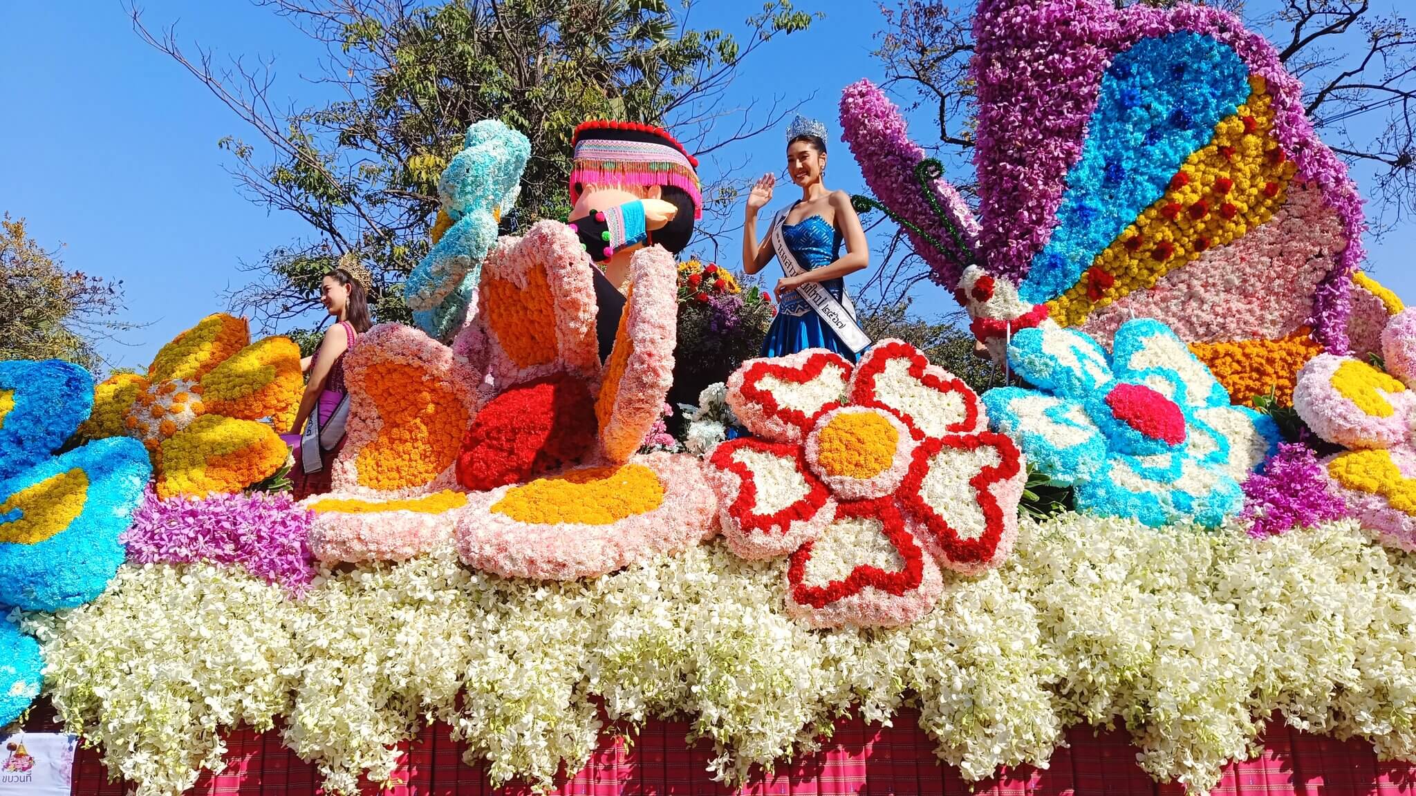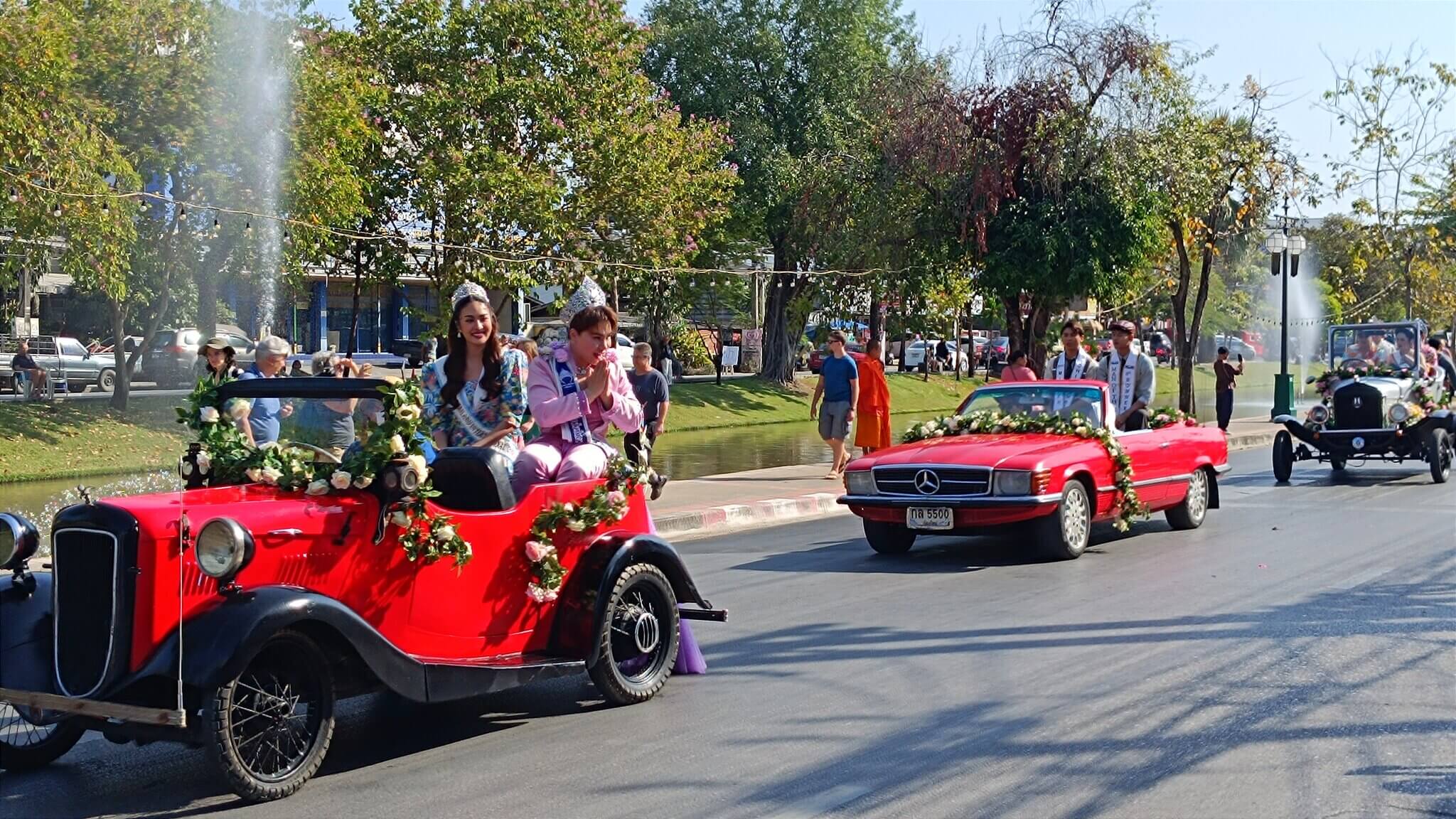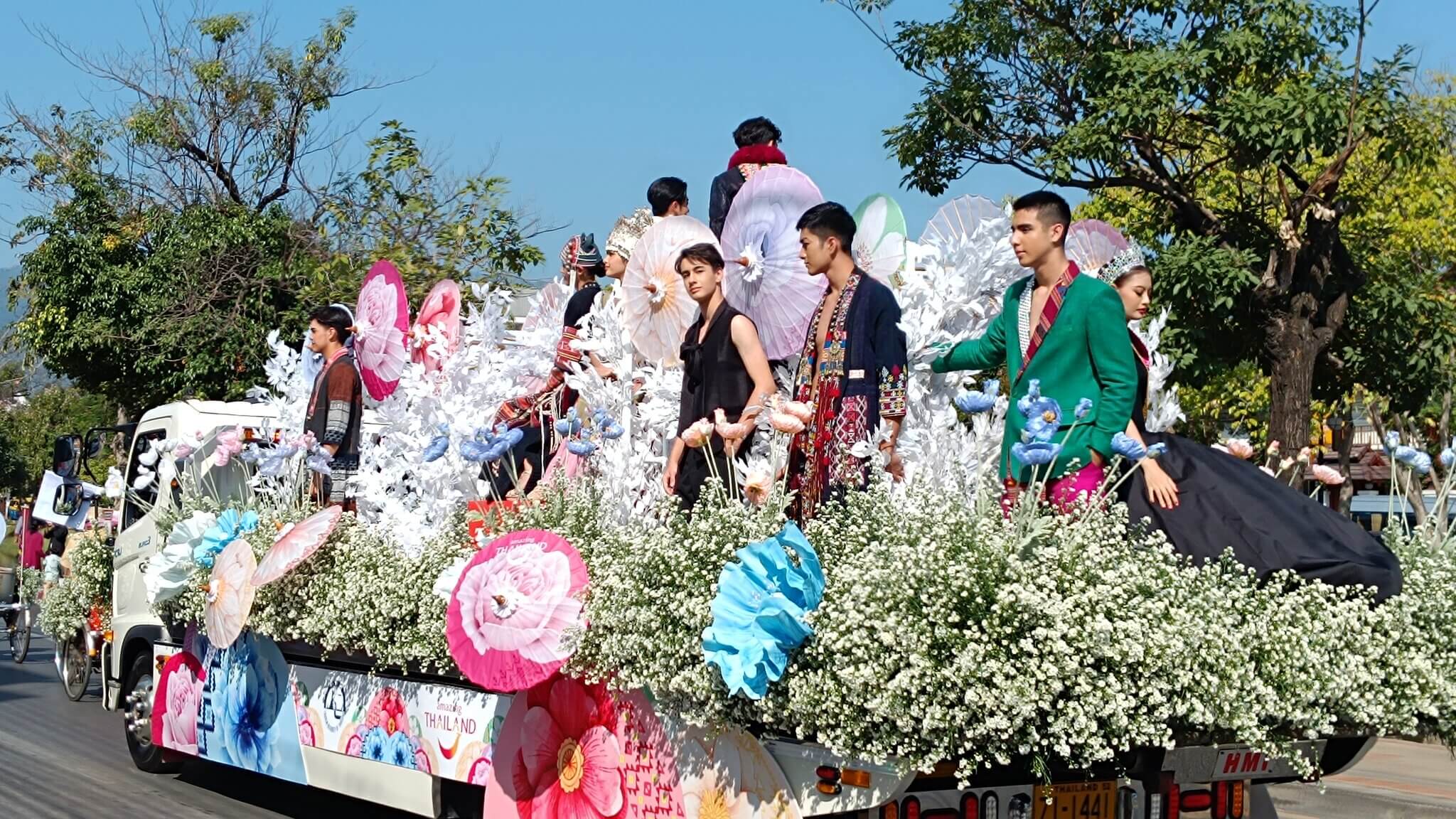 Une immense parade comme dans un parc Disney commence tôt le matin, vers 08h00, et dure jusqu’à 11h00 avec près d’une trentaine d’immenses chars fleuris, des défilés avec danseuses et fanfares et d’autres surprises comme des vélos fleuris ou des voitures anciennes. Le défilé part du pont Nawarat et se déplace lentement en passant par les routes Tha Pae, Kotchasarn, Chang Lor et Arak, avant de rejoindre les abords du joli jardin public de Nong Buak Haad pour terminer son parcours. Il n’est alors pas trop tard pour observer de près les différents chars à l’arrêt. Ils restent sur place toute la journée et seront même encore là le dimanche.