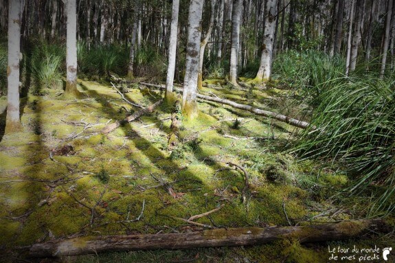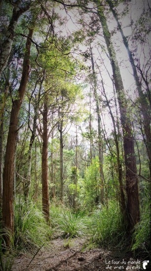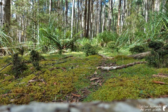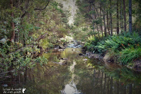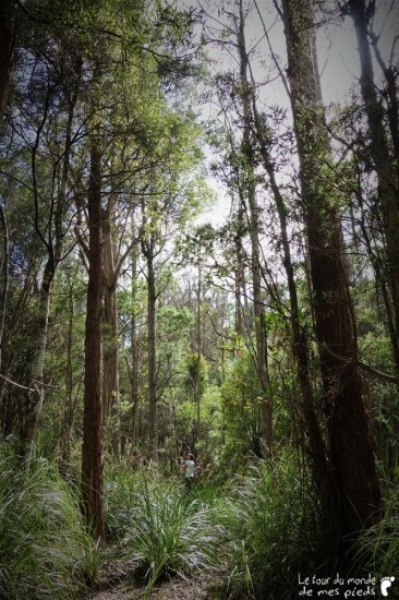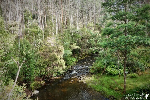Le dernier soir, comme à son habitude, Denis nous tend un verre de vin puis nous invite à visiter les alentours de sa propriété. À l’époque de l’achat, il y a quelques années, le prix de la maison est tellement correct qu’il ne soucie pas spécialement de ce que l’on peut trouver à l’intérieur des 50 hectares de forêt adjacents qui sont compris dans le tarif. Ce n’est que 6 mois plus tard qu’il commence à découvrir les quelques merveilles qui lui sont maintenant réservées. Parterres de mousse, fougères arborescentes, rivière et points d’eau peuplés d’ornithorynques… Mis à part un semblant de chemin rapidement tracé au bulldozer en un weekend, tout reste en l’état : naturellement splendide. Avec beaucoup de plaisir et un peu de fierté, Denis nous dévoile tour à tour ses petits bouts de paradis qu’il aime retrouver au calme, en compagnie de ses chiens.