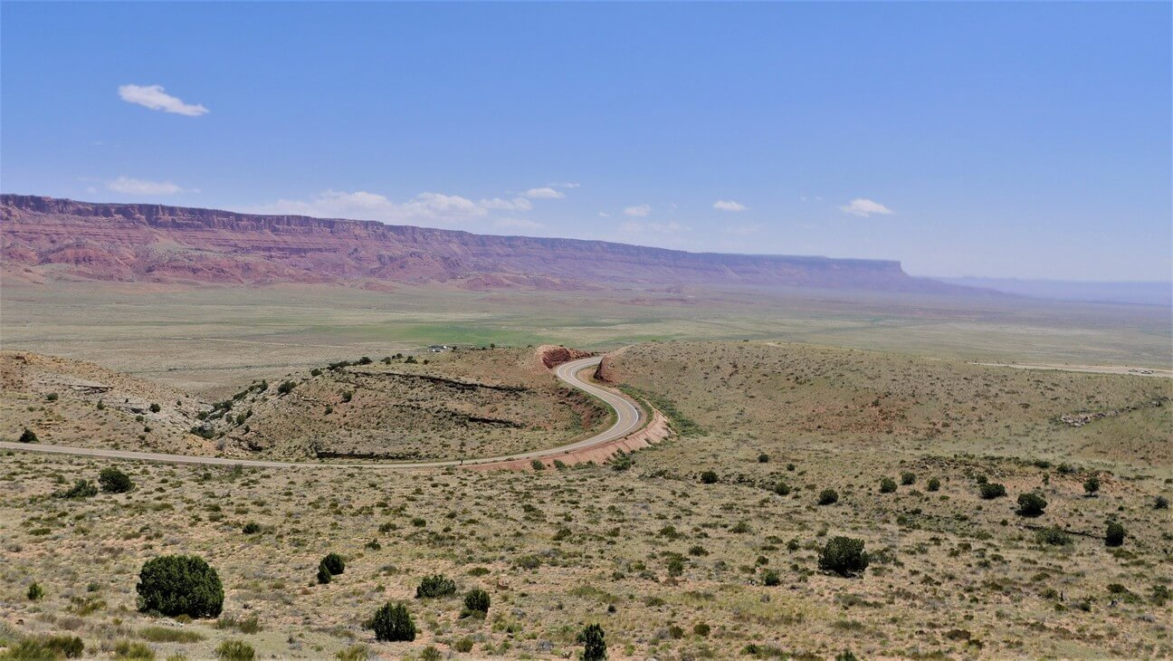 Petite pause quelques minutes plus tard, au bord de la route, à Cliff Dwellers – Stone House. Il est également possible d’apprécier au loin Vermillion Cliffs pendant une partie du trajet.