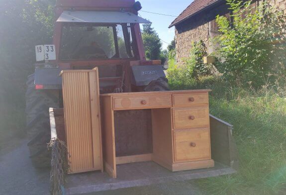 Au programme aujourd’hui, finir la mise en place de l’arrosage automatique et repeindre en noir le bureau que le voisin m’a gentiment donné et livré en tracteur l’année dernière. Tout un programme.