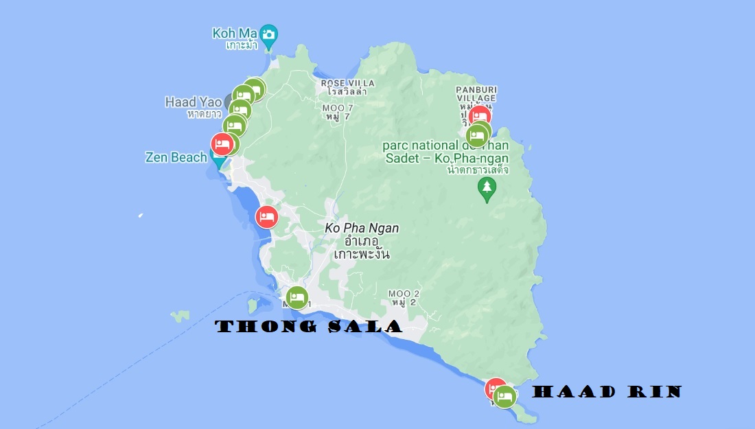 J’ai eu l’occasion de séjourner plusieurs fois à Koh Phangan (Ko Pha Ngan) depuis ma première visite lors de mon tour du monde en 2013. Je crois bien que c’est ici que je suis tombé amoureux pour de bon de la Thaïlande. C’est une île facile à visiter en scooter ou en taxi mais qui selon moi mérite bien au minimum une semaine, le temps de découvrir des endroits moins visités. On va donc voir les différentes zones de l’île avec à chaque fois des hébergements pour tous les budgets avec des auberges de jeunesse, des hôtels, des bungalows et des établissements 5 étoiles.