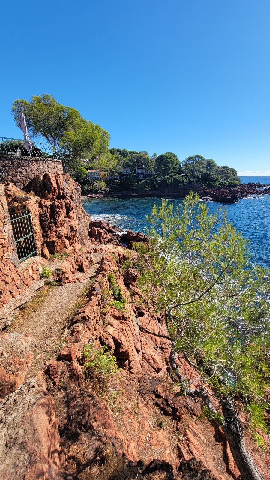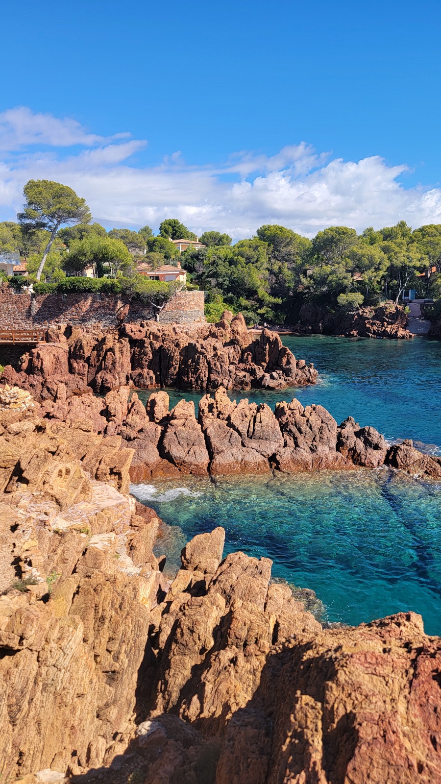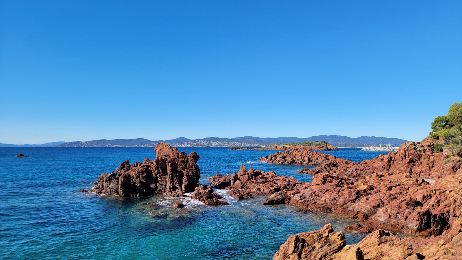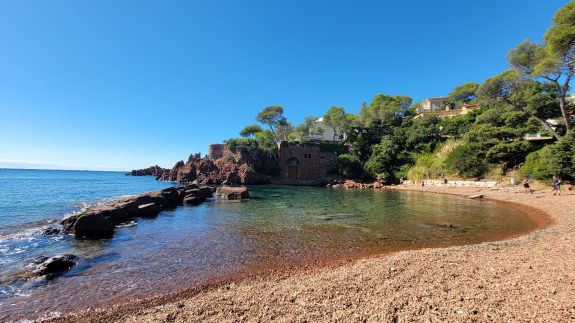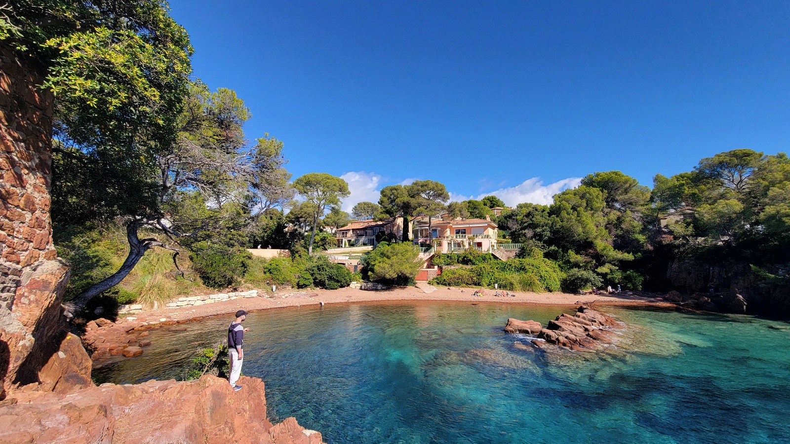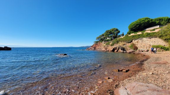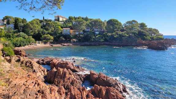 Première étape : la Calanque de Santa Lucia. Facile d’accès, elle est parfaite pour une pause baignade ou juste pour admirer la couleur de l’eau. Les roches rouges de l’Estérel contrastent magnifiquement avec le bleu de la Méditerranée. Même en septembre, l’endroit garde un charme fou.