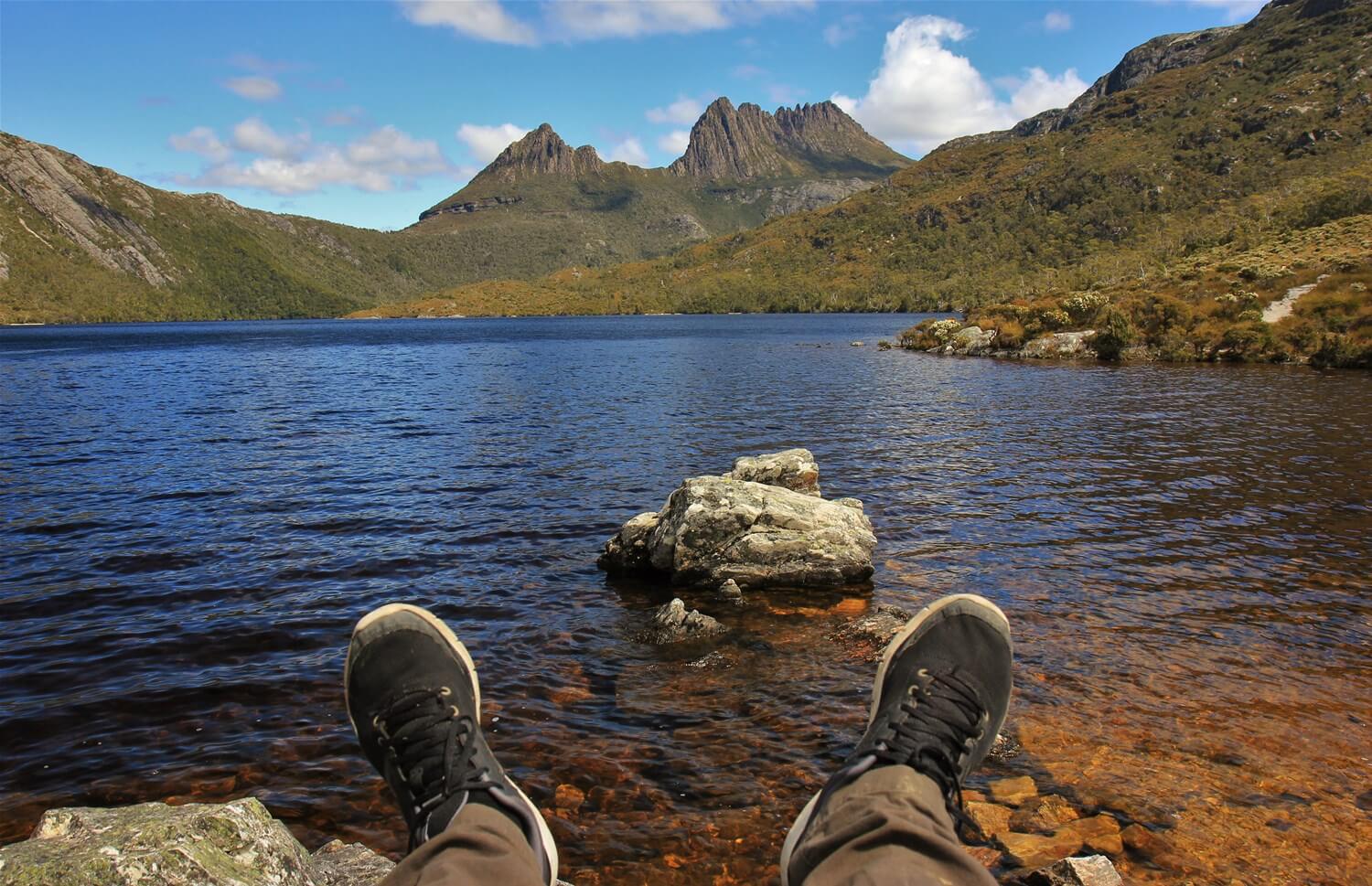Le lac et Cradle Mountain au loin, quelques mètres après le parking.
