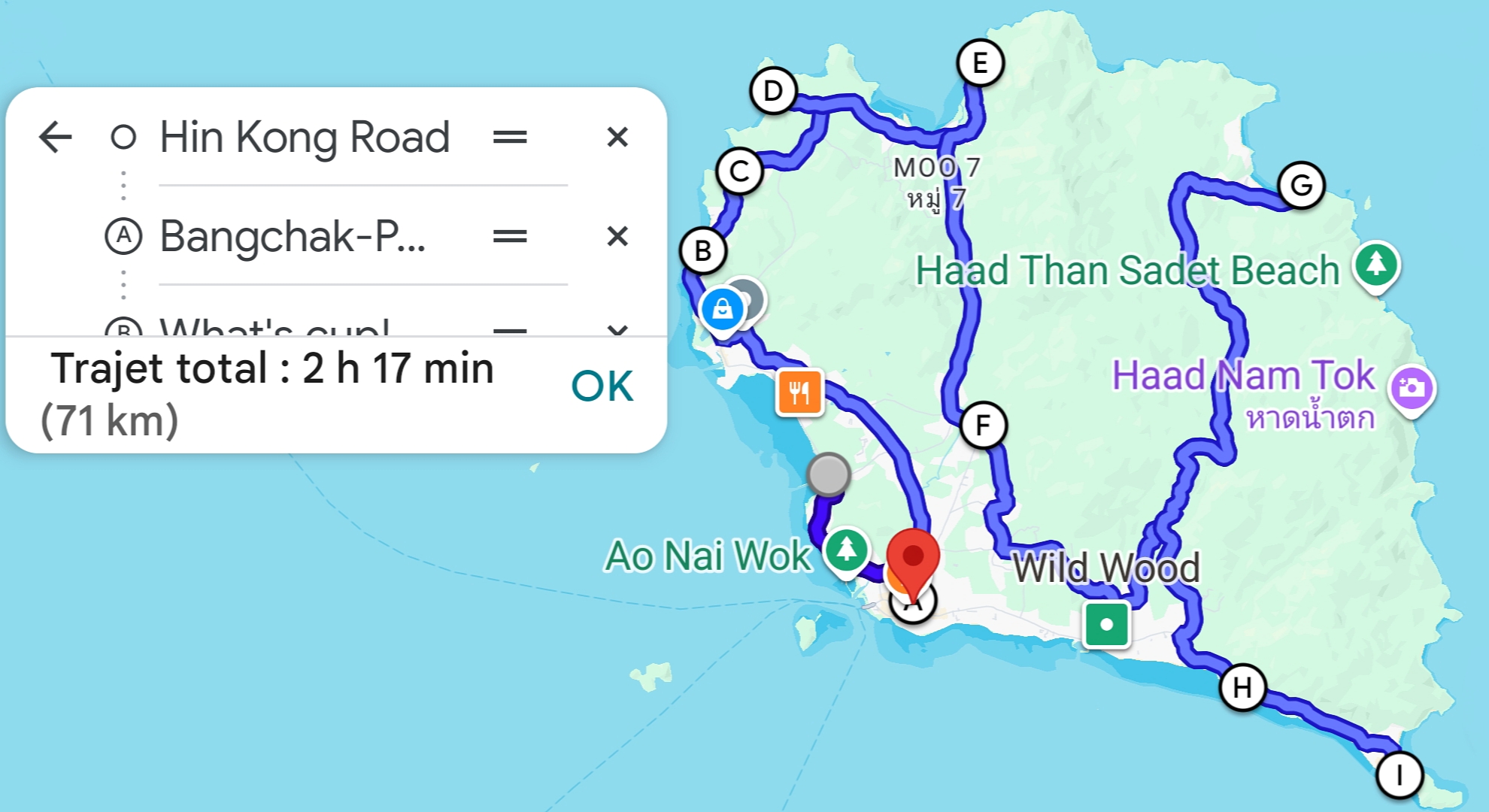 Cette boucle devrait vous offrir une sacrée belle journée de route et de découvertes sur Koh Phangan, entre plages, temples, points de vue et routes mémorables en scooter.