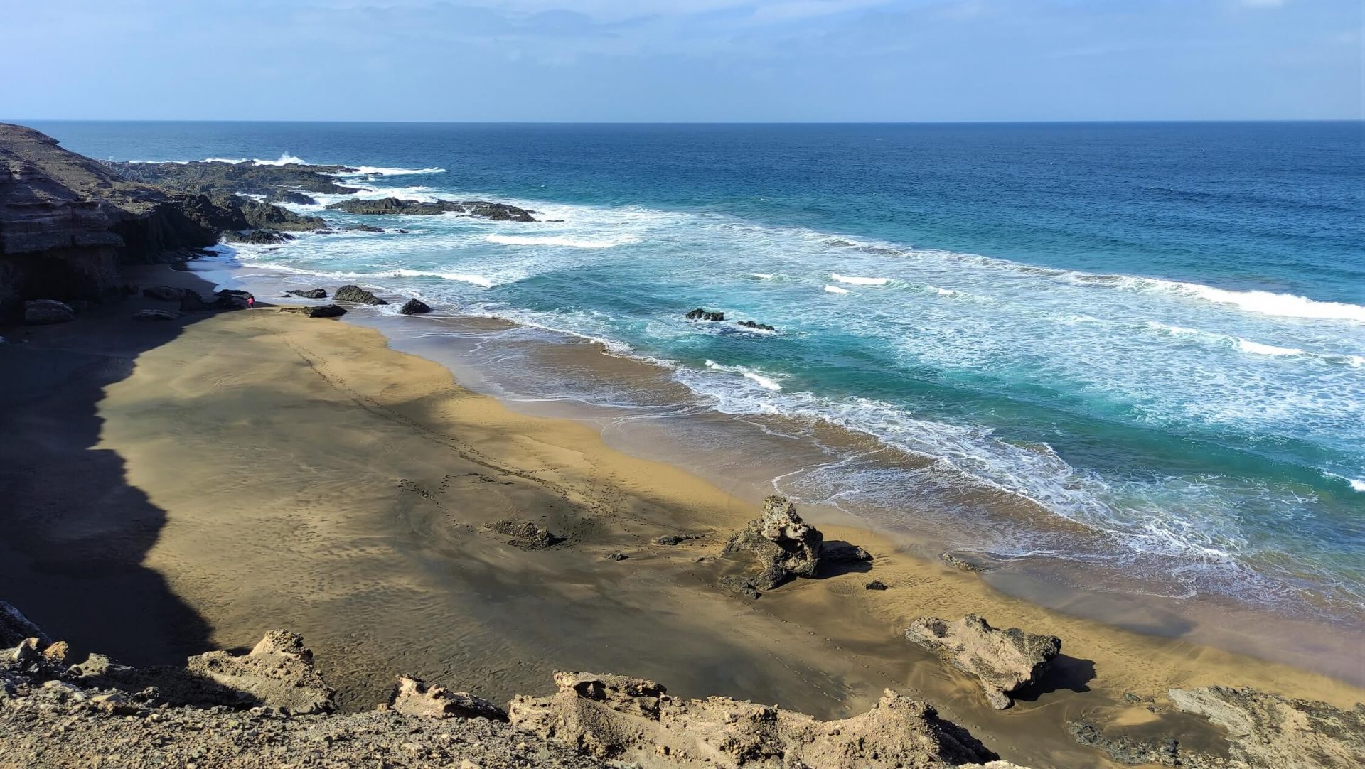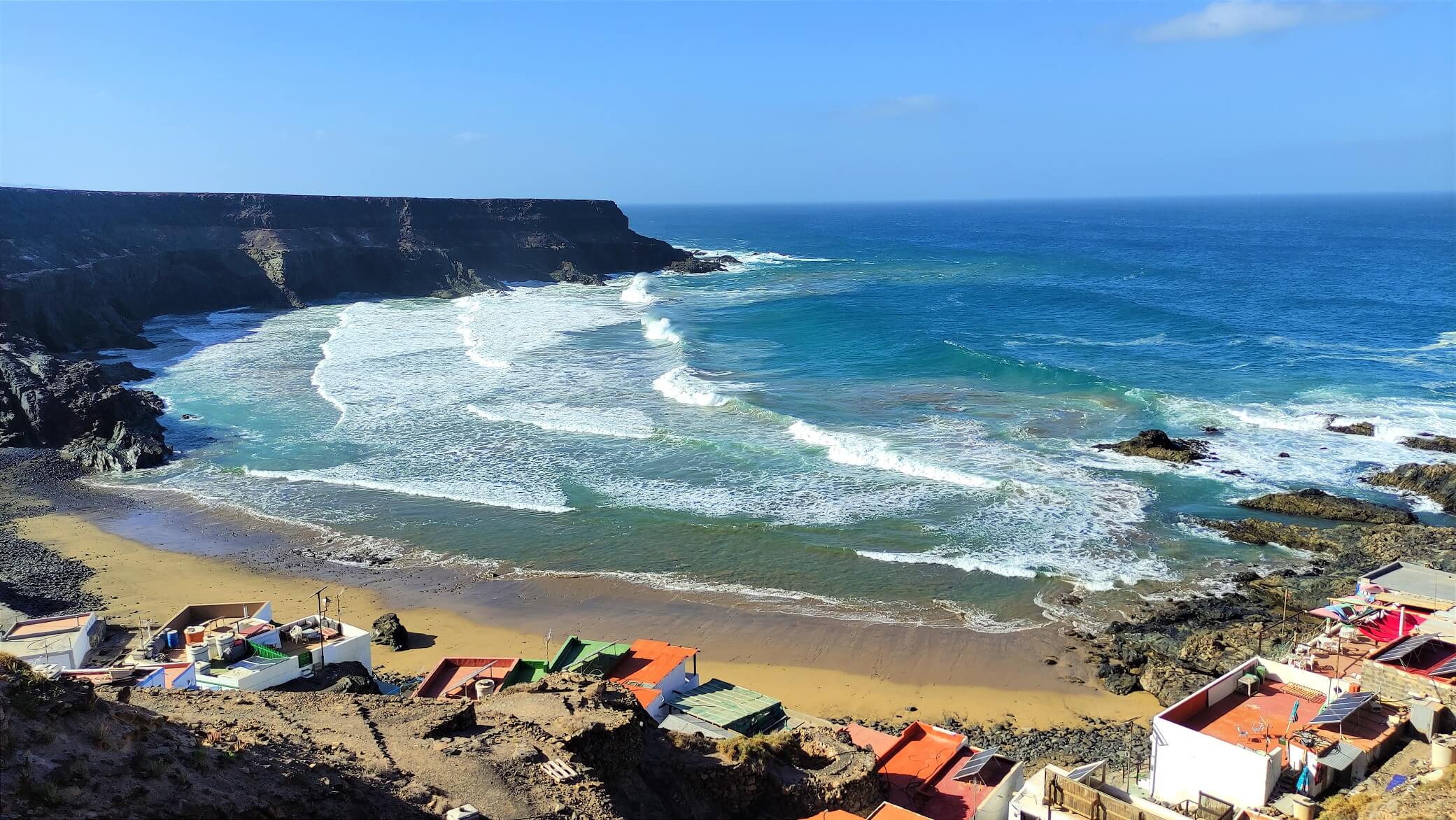 Encore du Fuerteventura sauvage et des routes non goudronnées à privilégier lorsque vous visiterez la partie Nord de l’ile. Rendez-vous d’abord au Mirador de Vallebrón pour un premier stop. Puis direction les plages isolées de Tebeto et de Jarubio avec toujours de grandioses panoramas. Arrivée à Jarubio la route était trop ensablée pour continuer et il était plus raisonnable de refaire la route en sens inverse. On “perd” une trentaine de minutes mais arriver à Los Molinos par l’autre route est loin d’être dérangeant. Une fois sur place ce petit village de pêcheurs se contemple facilement des deux côtés de la baie pour à chaque fois de chouettes panoramas.