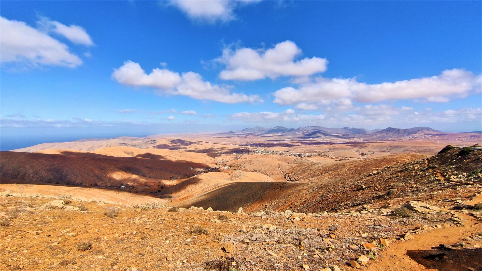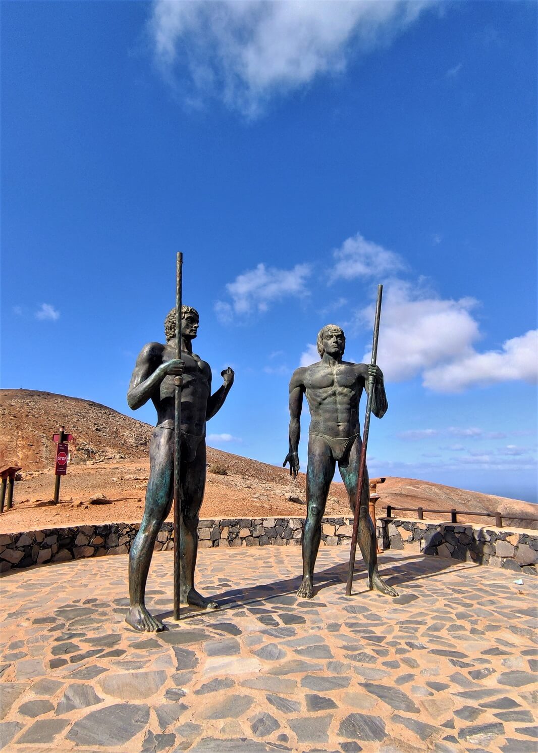 Un joli itinéraire d’un peu plus d’une heure en direction d’Ajuy traverse l’île dans sa largeur (plus ou moins au niveau de l’aéroport) avec plusieurs arrêts “miradors” offrant de jolis panoramas et de quoi faire une petite pause. Au programme le Mirador de Guise y Ayose (et ses deux statues géantes), le Mirador Las Peñitas et enfin le Mirador del Risco de las Peñas qui mérite un peu plus qu’un stop et de marcher quelques minutes pour apprécier les lieux et l’horizon.